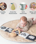 A super soft teddy and book in one – what a way to delight your baby! This Snuggle Bear Book from Taf Toys is suitable from birth and features a high contrast side for newborns with a vibrantly coloured reverse for growing babies. The teddy bear helps the book to stand upright making this perfect for tummy time or for use with a baby gym/mat, and the included baby safe mirror will keep your little one entertained as they explore their own reflection! Easily wrapped up into the bear’s arms this will soon become their favourite toy to take wherever they go!