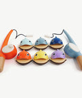 Let’s go fishing! The innovative Catch the fish! by TOPBRIGHT is great fun. Children go on a fishing tour by themselves or with their parents and friends, and catch as many fish as possible with realistic fishing rods. The set consists of six magnetic, three-dimensional fish in modern colours that inspire to play, two functional fishing rods made from wood with realistic reels and a soft fabric mat as a base. Whether they are playing by themselves or with others – while fishing, children practice dexterity, fine motor skills and hand-eye coordination.