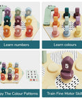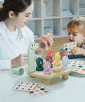 “What colour is the 4? - The 4 is green!” With the HAPPY DINO TWIST educational game by TOPBRIGHT, children aged 36 months and over immerse themselves in the world of colours and numbers. Little explorers screw colourful lids onto the back of a cheerful dinosaur and learn about colours and numbers in a playful way. The colourful screw-on lids are numbered from 1 to 9. Task cards printed on both sides make learning twice as much fun! On one side, kids discover exciting colour patterns that they recreate with the lids on the dinosaur's back. This not only trains colour recognition, but also encourages creative thinking. The other side of the cards continues with numbers: Here, little ones practise counting in a playful way by recreating the matching number pattern. The game's clever screwing mechanism helps children to develop their fine motor skills and at the same time promotes their cognitive abilities. While the kids turn the colourful bottle caps, they train their hand-eye coordination and have lots of fun at the same time.