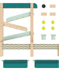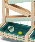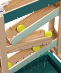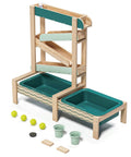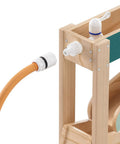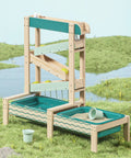 How does water flow? How does it change its course when obstacles are in its way? The Water Track by TOPBRIGHT turns every summer day into an adventure for children aged 36 months and older. The outdoor water play set has four tracks down which the water flows, encountering obstacles that can be adjusted individually and guided through openings. The two large basins at ground level can be filled with water or sand – perfect for splashing, playing in the mud, and building on the balcony, terrace, or in the garden. A special highlight: when children open the obstacle in the top track, a waterfall is created that falls into the outer basin. A garden hose can be connected to the top track so that the water track quickly fills with water. The lowest track has small holes that create a fascinating water curtain – ideal for playing and marvelling. Made of weather-resistant sustainable fir wood, the Water Track is robust and durable. While playing, children discover the laws of water in a playful way, develop fine motor skills and train their logical thinking.